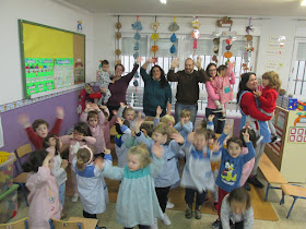 No podíamos esperar a tocarlo y meter las "manos en la masa", así que rápidamente, acordaron un día con la seño Maribel para poder realizar esta nueva sesión y poner a tope nuestro sentido del tacto. Así que una mañana vinieron a clase Vanesa, Montse, Juanma y Macarena. Distribuimos las mesas y sillas de la clase para no perdernos ni un detalle y.....